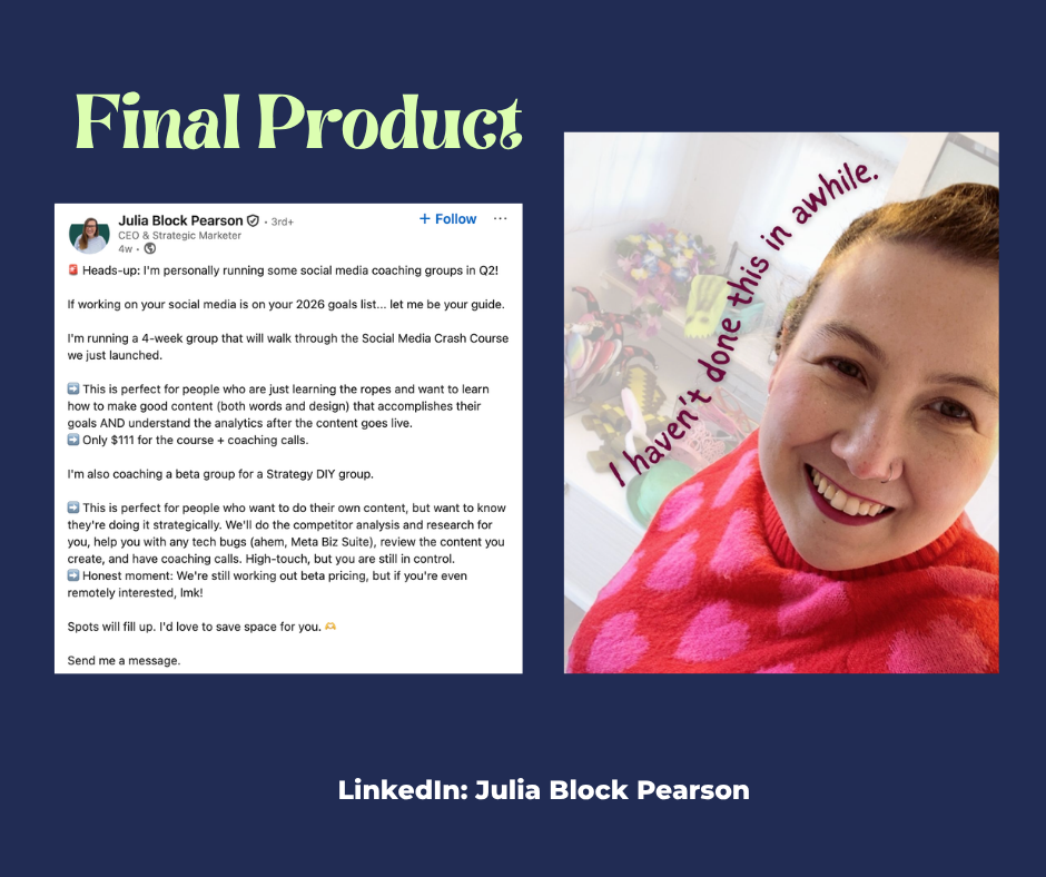 These posts are built around what actually works: education, connection, and promotion. Yes, we incorporate some trending elements, but the goal isn’t to chase trends.