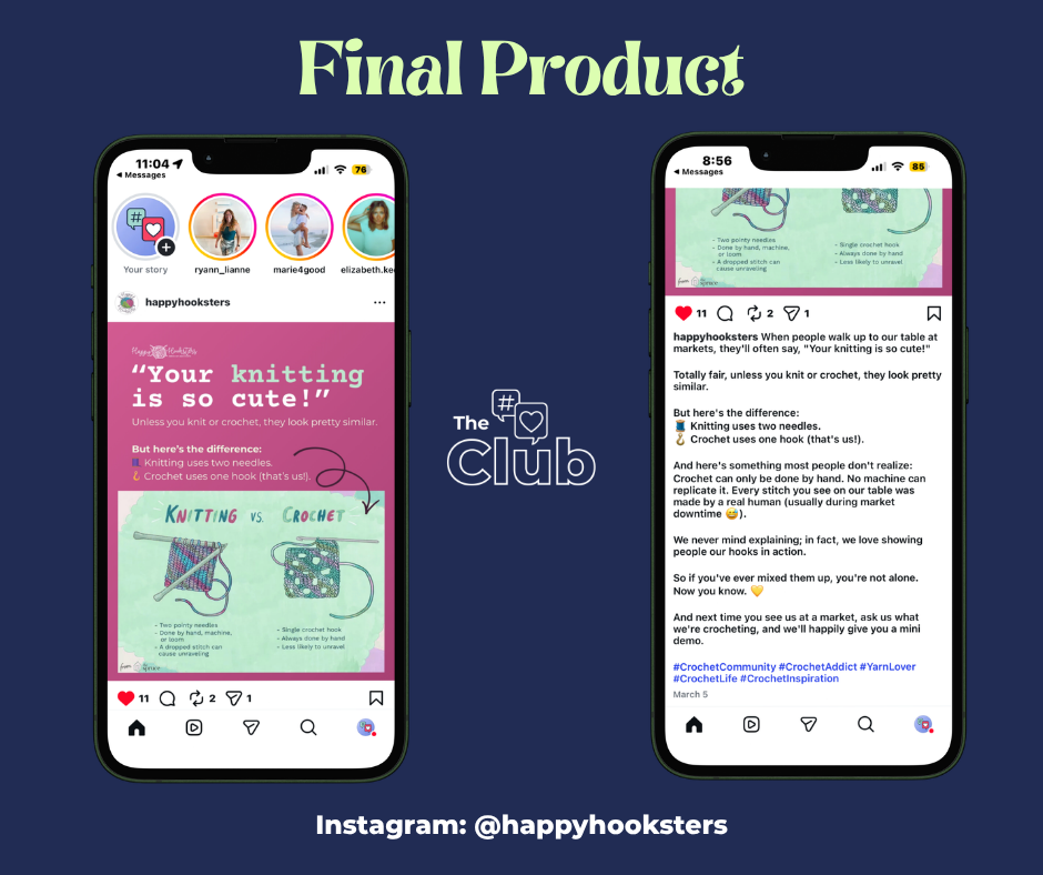One of our members in the crocheting business grew their followers organically by almost 400 in the past three months and saw their reach more than double.