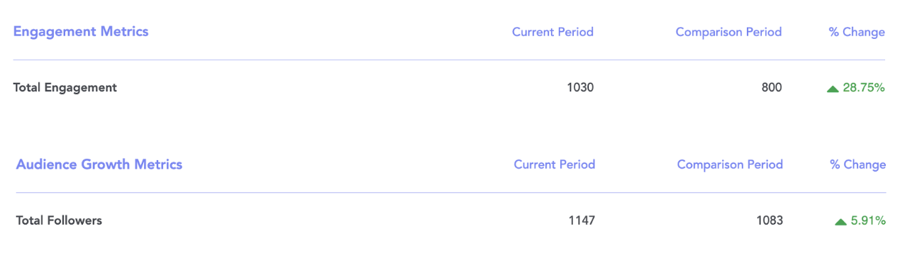 Another one of our members, a children’s book author, saw her total engagement increase by 28% quarter over quarter and grew her followers by 64 people, completely organically!